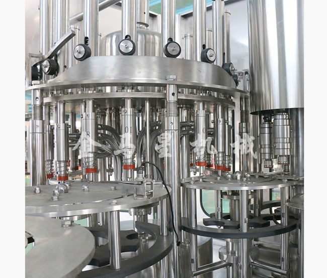 果汁灌裝機同時適用于果汁、茶飲料、功能飲料及果味奶飲料的灌裝。在溫度控制器的幫助下,該機器能夠進行80-95度高溫熱灌裝。本設備采用瓶頸懸掛技術,適用于各種瓶型,跟換瓶型只需調節傳送鏈的高度及出瓶玻璃即可,方便快捷。全機PLC控制變頻調速,自動化程度高,自動控制進液,液位控制準確,無滴漏。與物料接觸部分均為食品級304優質不銹鋼。是飲料廠家的優選產品。