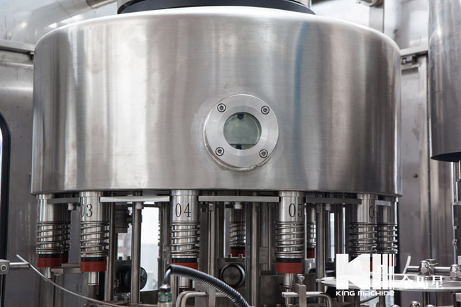 飲用水灌裝機(jī)集沖洗、灌裝、旋蓋于一體,全過程自動化運(yùn)行,主要適用礦泉水、純凈水等不含氣飲料的沖瓶、灌裝、封口連續(xù)作業(yè)。本機(jī)大部分電器系統(tǒng)零件均采用國外優(yōu)良產(chǎn)品,所有與液料接觸的地方均采用優(yōu)質(zhì)的不銹鋼材料制作,主關(guān)鍵部件采用數(shù)控機(jī)床精密加工, 整機(jī)光電檢測各部件的運(yùn)行狀況,無瓶不灌裝,無瓶不送蓋,自動化程度高,操作簡易,具有耐磨、穩(wěn)定、故障率低等特點(diǎn),產(chǎn)品質(zhì)量處于行業(yè)前列,是新老飲料投資者的選擇。