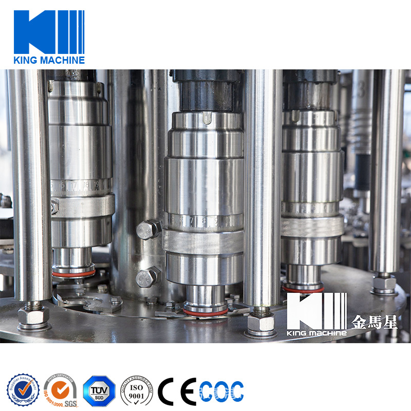 飲用水灌裝機集沖洗、灌裝、旋蓋于一體,全過程自動化運行,主要適用礦泉水、純凈水等不含氣飲料的沖瓶、灌裝、封口連續作業。本機大部分電器系統零件均采用國外優良產品,所有與液料接觸的地方均采用優質的不銹鋼材料制作,主關鍵部件采用數控機床精密加工, 整機光電檢測各部件的運行狀況,無瓶不灌裝,無瓶不送蓋,自動化程度高,操作簡易,具有耐磨、穩定、故障率低等特點,產品質量處于行業前列,是新老飲料投資者的選擇。