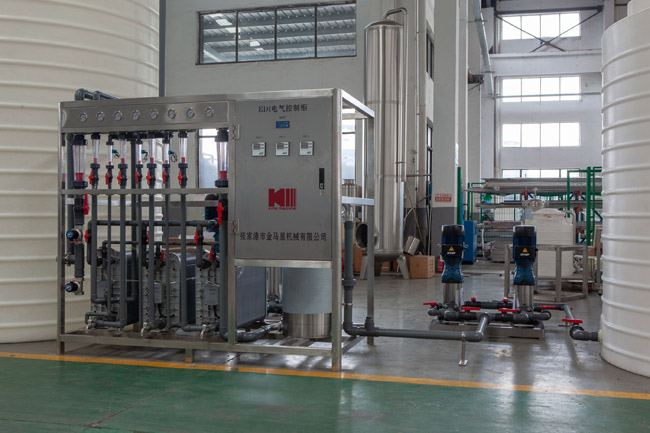 EDI設備主要包括:增壓泵、EDI膜塊、EDI電源控制器、隔膜壓力表、流量計、電阻儀、連接管道閥門、機架